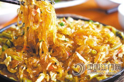 最让我难忘的要数“铁板水晶粉”了。晶莹剔透的水晶粉,入口嫩滑,咬下去却韧劲十足,辣中带酸,很开胃。配合秘制酸豆角粒,软、脆、韧、滑,四种口感让我一试难忘。此时店里老板——湖南商会常务副会长谢启发微笑道:“这便是我们湘菜的魅力!”