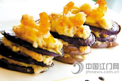 拿破仑芝士海鲜焗茄肉 茄子的做法很多,但常见的不外乎蒸、煎、烤,而这一款出品可以说是下午茶的力推之作。芝士肉酱涂抹在茄片中,茄片与肉酱相隔层叠,生煎。最后鲜虾肉放在其面上,抹上进口芝士放入焗炉中。入口瞬间,外酥内软,海鲜味与芝士的鲜香一拍即合,再配上茄肉的软绵,口感非常好!