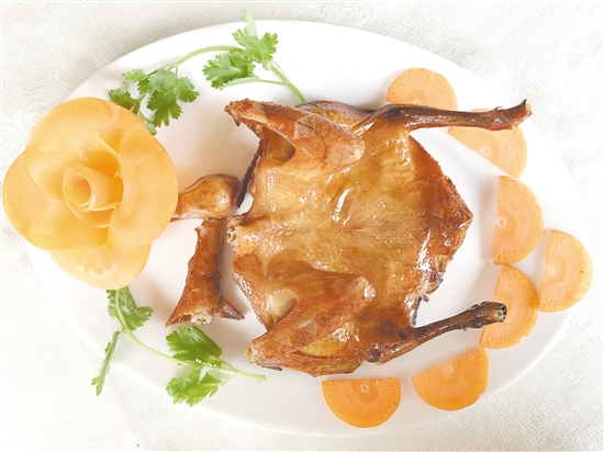 位于建达路大坑水库内的鸣泉山庄,有一道菜式:琵琶乳鸽。据该山庄的大厨介绍,琵琶乳鸽的做法很简单,就需要2个步骤:先用秘制酱料给乳鸽腌制1个小时,然后将乳鸽上叉,吊在炭炉上烧15分钟,烧好后就可以斩块起碟。简单的做法能做出美味的出品,其关键就是用来腌制乳鸽的秘制酱料。原来鸣泉山庄的大厨曾经向香港大厨学艺,之后,他运用学到的厨艺,创新研制出独特的酱料,才有了这道风味独特的琵琶乳鸽。