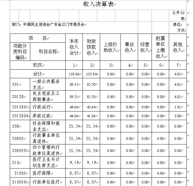 2.其他收入4.01万元,比2014年决算数增加4.01万元,增长100%。主要原因:2015年民进省委会和市委统战部下拨调研培训经费增加。
