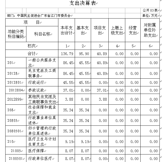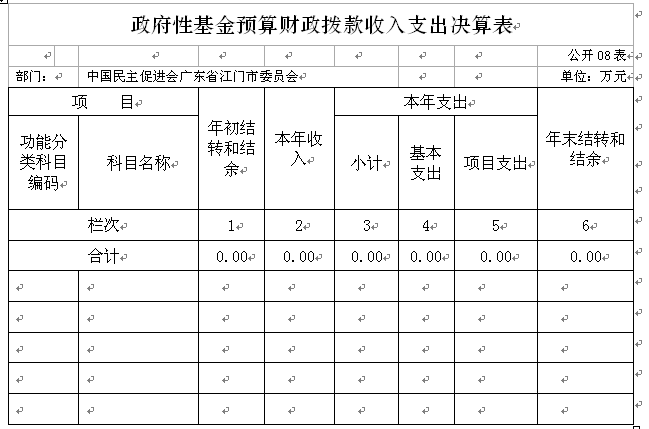 (2)本表功能科目填列到项级支出科目,没有发生数的支出科目不用填列。