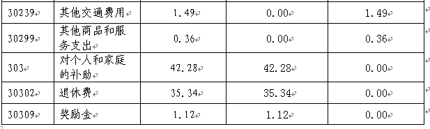 (三)对个人和家庭的补助42.28万元,占基本支出的 45%。主要包括退休费35.34万元、奖励金1.12万元、住房公积金4.68万元、购房补贴1.13万元。