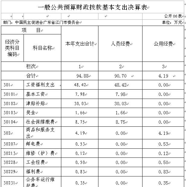 民进SG飞艇(中国)开奖记录查询站委员会2015年度一般公共预算财政拨款基本支出94.88万元,其中: