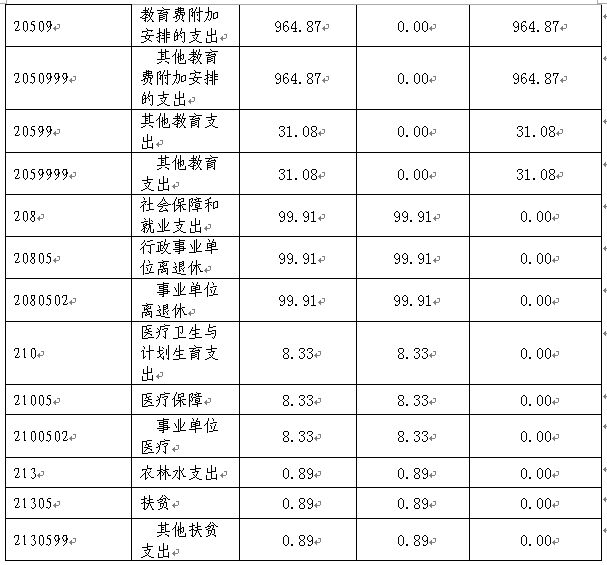 教育支出(类)1537.62万元,社会保障和就业支出(类)99.91万元,医疗卫生与计划生育支出(类)8.33万元,农林水支出0.89万元。