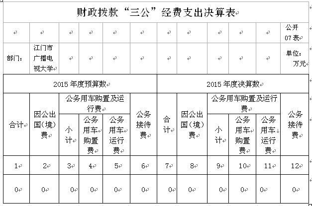 (4)“三公”数据合计为零的,在合计栏填列“0”,并在决算情况说明中予以说明。