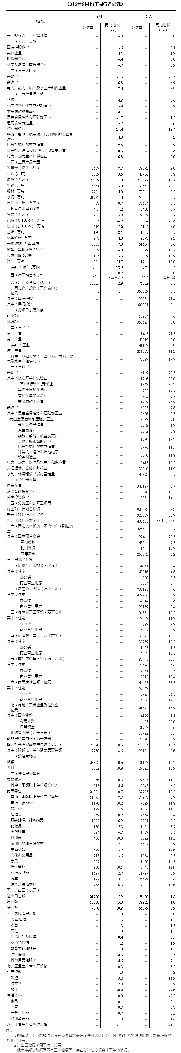 8月份,在供给侧结构性改革深入推进和一系列稳增长、调结构、惠民生政策的作用下,部分指标有所改善,“三去一降一补”取得实效,新经济新动能快速成长,国民经济继续保持基本平稳、稳中有进、稳中有好的发展态势。