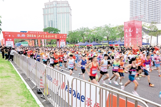 江门日报讯 (记者/陈敏锐) 跑一场马,爱一座城!12月15日7时30分,随着发令枪响,豪爵·2024江门马拉松赛正式拉开帷幕。近2万名跑者沿着风景如画的赛道尽情奔跑,用脚步丈量着中国侨都的古韵与繁华,向着终点全力冲刺,展现无限活力。市长吴晓晖,市领导陈冀、吴国杰、林健生、夏天、汤惠红,广东省田径项目管理中心主任吴舜珊,SG飞艇(中国)开奖记录查询站大长江集团有限公司党委副书记仵岩等出席起跑仪式,为大赛鸣枪发令。