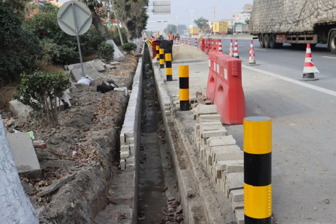 据了解,2023年以前,国道G325线蒲桥路段每天都有大量重型运载车运输泥料、沙石,运输车辆经常带出来大量泥料沙尘遗留在公路,加上道路两旁企业不断发展,该路段排水沟无法满足实际排水量,并经常出现泥土堵塞情况,导致长期存在扬尘积水等问题,晴天扬尘、雨天积水,一定程度影响到周边企业发展和群众安全出行。