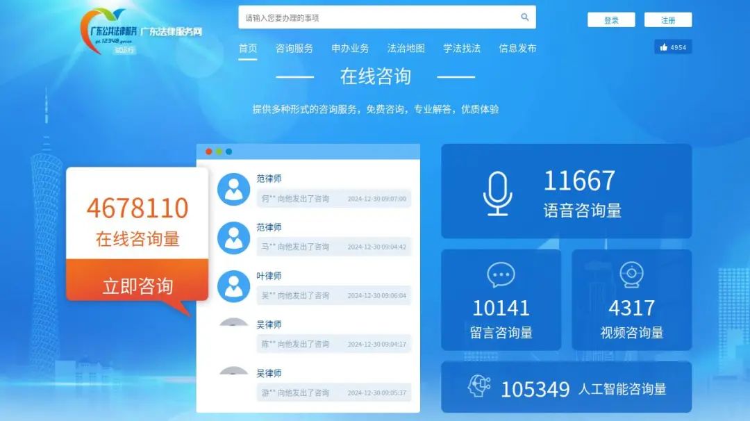 市司法局专门设计了“江门智慧司法”微信小程序的大型二维码立牌,分别放置在市、县(市、区)两级公共法律服务中心、镇(街)公共法律服务工作站内。加强网络法律服务资源供给。2024年以来,江门驻网律师登陆广东法律服务网在线提供咨询服务量1.5万余次,群众需求量1.23万余件,需求响应率124.26%。全市村(社区)法律顾问提供法律服务2.4万余次,其中,提供法律咨询1.8万余次,出具法律意见书406份,开展法治宣传5202场次,参与法律援助19宗,参与人民调解79起,其他法律服务560件。法律援助案件受理3079件,安排值班律师提供法律帮助3040次,安排律师帮助犯罪嫌疑人签署认罪认罚具结书4746份,为军人军属提供法律援助22次,为来访、来电群众解答法律咨询1.28万余次。