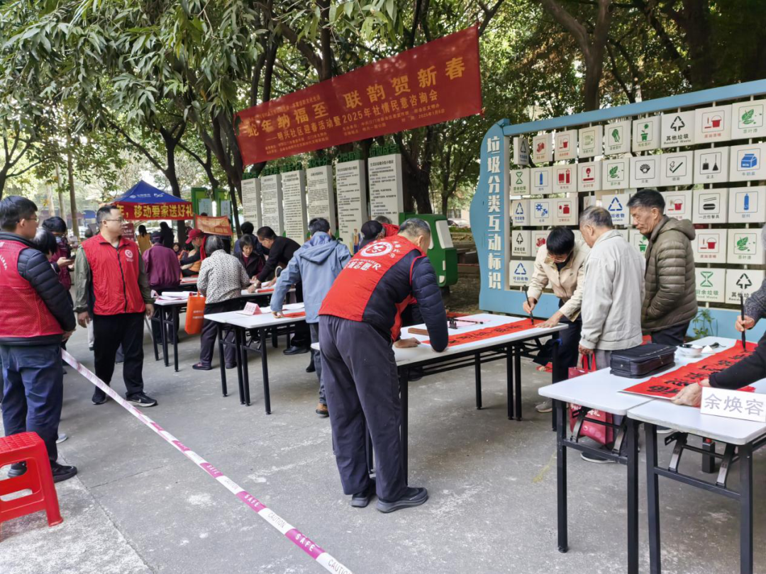 1月17日,江海区司法局联合江南街道永明社区开展“南粤春暖普法行”活动。活动邀请江海区书法家协会的会员现场翰墨飘香,把新春祝福、法言法语编成押韵合辙的新年对联,挥墨豪书;现场还设置了法治有奖问答,普法志愿者与参与活动的孩子们互动交流,提升未成年人依法维权的能力;现场还派发了宪法、民法典、反电信网络诈骗法及禁毒法等宣传资料,将诚意十足的“法治年货”送进群众心里,营造喜气祥和新春氛围的同时,推动法治观念深入人心。