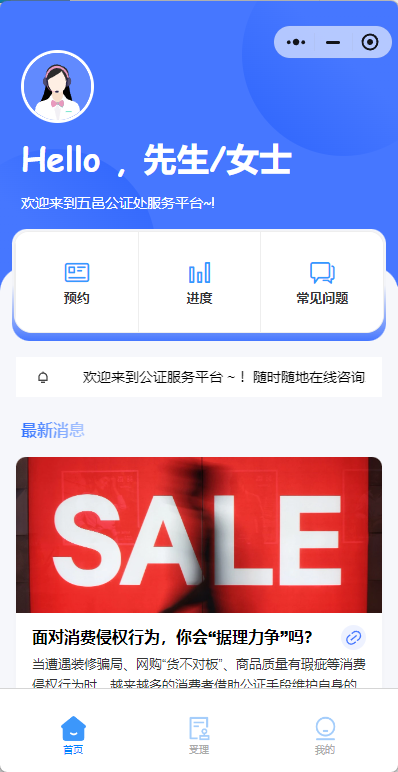 大力践行“最多跑一次”服务。采取减证便民、优化服务等多项措施确保为当事人提供最优质的公证服务,并最大限度实现便民措施,优先对老、弱、病、残、孕等市民提供绿色通道,主动安排人员提供上门办证、送证上门等便民服务。2024年为70周岁以上,且有意向的老人免费办理遗嘱公证220件。针对有办证需要的群众实行“工作日延时办” “周末预约办” 等系列便民服务。为方便群众就近办理公证业务,大力推进“一事一站办”,依托街道(居委会)党群活动中心、政务服务中心、公共法律服务中心(站),为群众就近提供“家门口”公证法律服务4655次,进一步办好群众身边事、织密为民服务网。