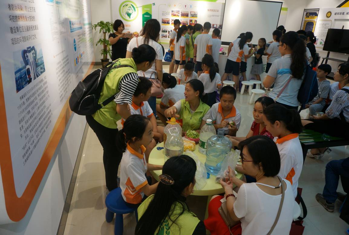 本次活动共分三个环节,首先由鹤山市环境教育基地的专业解说员带领市民参观“保护水资源”、“清洁空气你我共享”、“环境影响评价”、“企业良好做法”、“环保宣传活动剪影”及“警示教育”共六个主题的主题展览厅,介绍人类环境现状、环境污染来源、政府企业及个人的环保责任等内容。学生家长们还参观了工业废水处理设备模型、固废回收箱、环保书籍、环保手工作品等,让学生们更深入了解环保领域的方方面面。