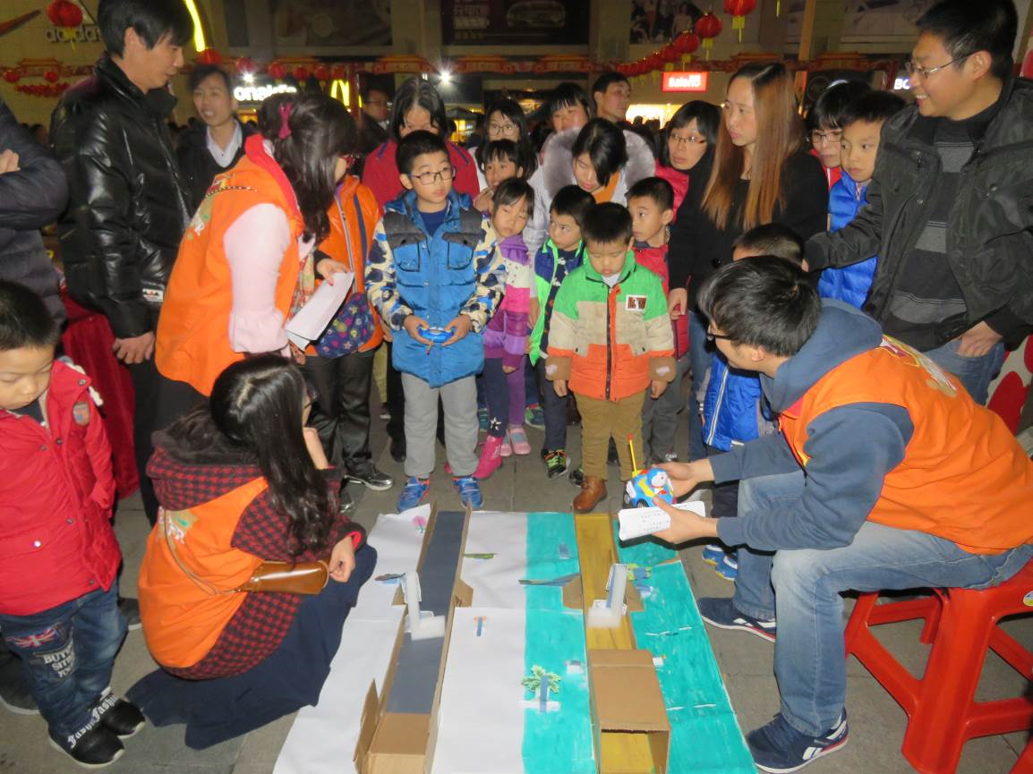 活动开始后,小朋友们熟练的将遥控车“驶上”了赛道,遇到红灯停下来,回答义工们提出的环保知识问题,回答正确,然后继续向前冲关。冲关成功后获得的奖券可以兑换心仪的礼物。小朋友们玩得不亦乐乎,大朋友们在一边呐喊加油,义工们热情服务,共同将活动气氛推向高潮,围观的群众纷纷称赞这游戏寓教于乐,有趣、环保、又学到知识!
