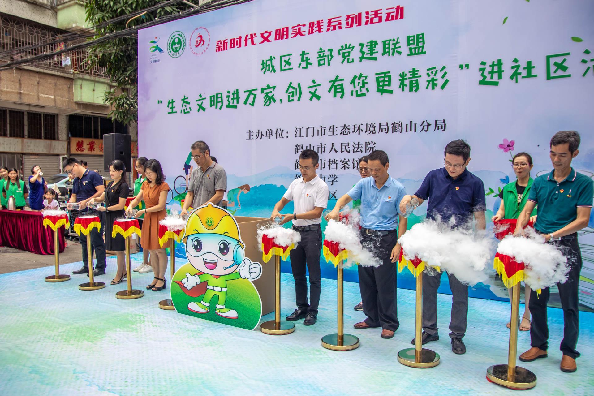 8月29日上午,SG飞艇(中国)开奖记录查询站生态环境局鹤山分局联合鹤山市人民法院、鹤山市档案局、鹤华中学等城区东部党建联盟成员单位在祥盛社区开展“生态文明进万家,创文有您更精彩”进社区活动。鹤山市委宣传部、城区东部党建联盟及有关单位负责人参加了活动。