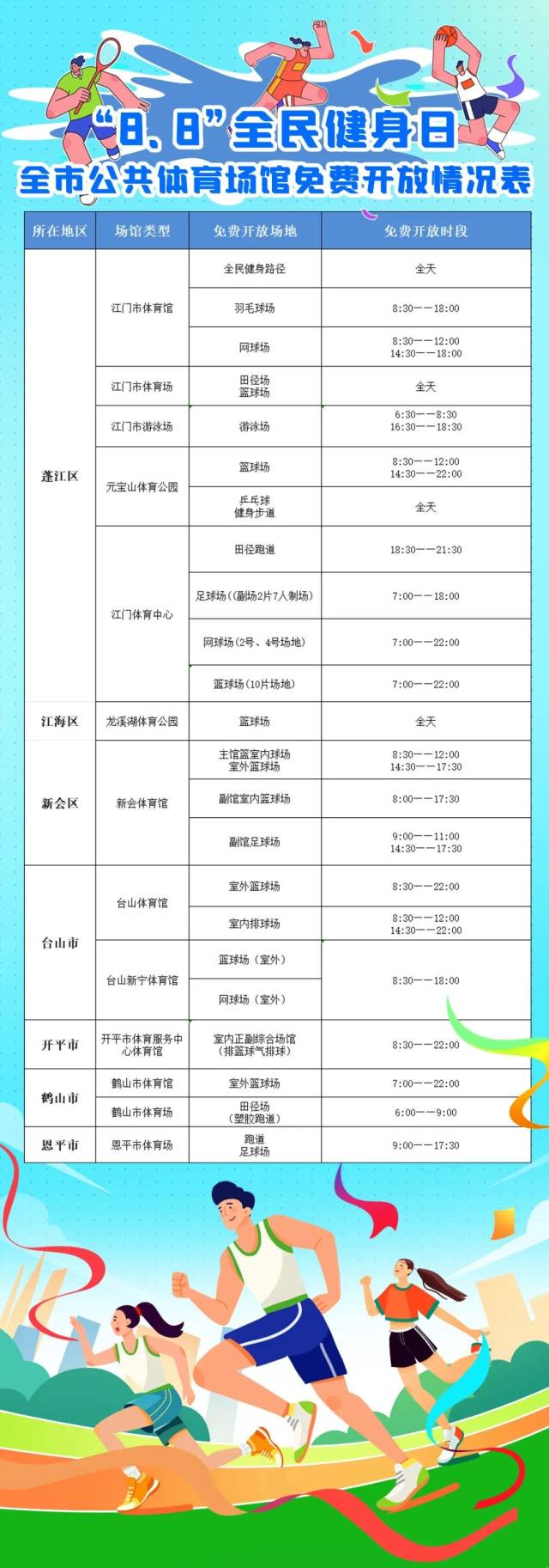 8月8日当天,这些体育场馆免费开放!点击图片看看有没有离你近的场馆吧!