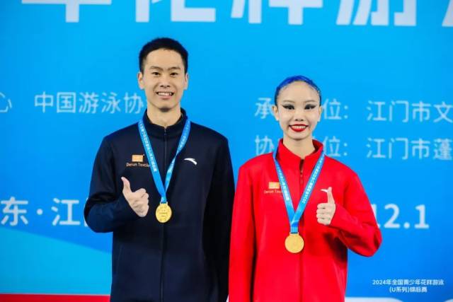 在青年组双人自由自选项目中,广东德润队的曹佑宸/羊一一获得第一名。