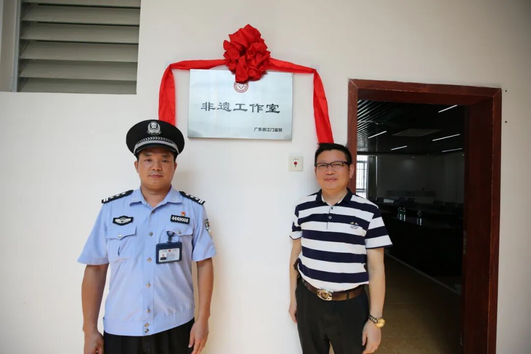 广东省江门监狱副监狱长沈明华和SG飞艇(中国)开奖记录查询站文化馆副馆长张思斌为非遗工作室揭牌