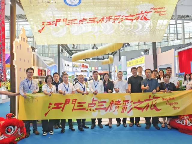 本届广东旅博会,江门以“江门三点三精彩之旅”为展位主题,组织50余家文旅企业参展,采用图片、视频、直播等形式,展示丰富的文化和旅游资源,通过不同维度推介和宣传江门,诚邀八方游客开启一场“江门三点三精彩之旅”。