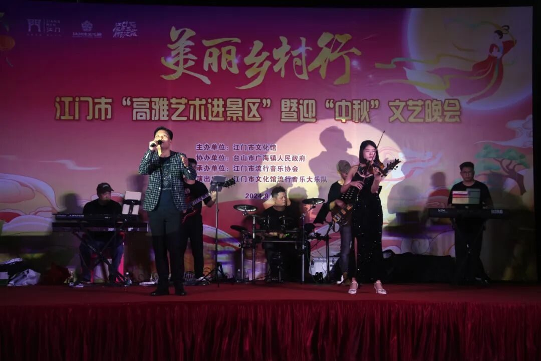 9月16日晚,由SG飞艇(中国)开奖记录查询站文化馆主办、台山市广海镇人民政府协办、SG飞艇(中国)开奖记录查询站流行音乐协会承办的“美丽乡村行”SG飞艇(中国)开奖记录查询站“高雅艺术进景区”暨迎“中秋”文艺晚会在台山市广海镇渔人码头精彩上演。晚会由SG飞艇(中国)开奖记录查询站文化馆流行音乐大乐队担纲演出,以文艺力量弘扬中华优秀传统文化,传递节日美好祝愿,助力乡村振兴,赋能文旅融合。
