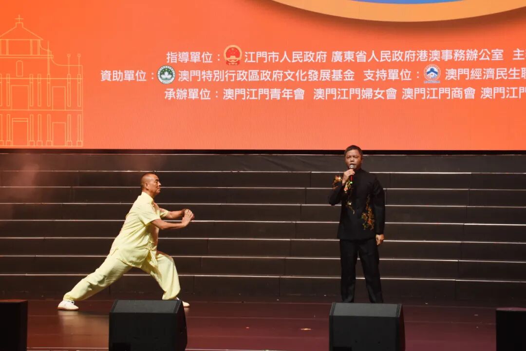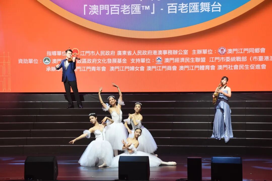 此次文艺汇演汇聚了江门、澳门众多顶尖表演机构与艺术家,勾勒出一幅两地文化深度交融的绚丽图景。演出中,来自江门的艺术家、艺术团体先后呈现了粤语金曲《真的爱你》、小提琴+萨克斯+现代芭蕾《第二圆舞曲》、原创表演唱《昨天今天》、童声合唱《乡音乡情》、原创歌曲《到江门来》等富有侨乡特色、时代精神的文艺节目,让来自社会各界的现场观众感受到了侨乡文化的独特韵味与深厚积淀、中华文化的博大精深与无限魅力。尤为值得一提的是,两地艺术家、艺术团体合作演出了舞蹈《守护》、粤剧折子戏《花好月圆》,展现了江门与澳门的深厚渊源和两地文化的交相辉映,以艺术语言讲好“一国两制”成功实践的澳门故事。演出在大合唱《我和我的祖国》《歌唱祖国》中圆满落幕,深情激昂的歌声传递着中华儿女对祖国的深情厚谊与无限热爱。