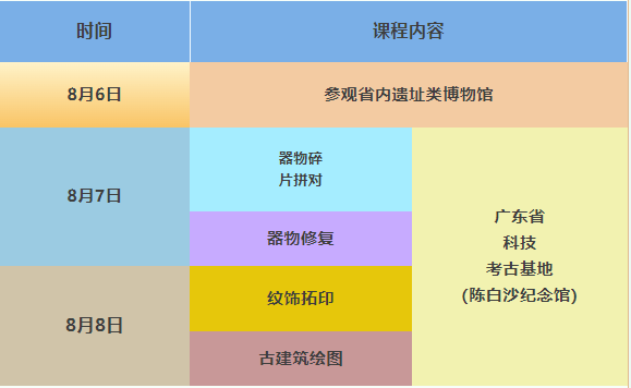 欢迎加入广东省科技考古基地夏令营(二期)!本期考古夏令营我们以室内修复为主题,学习考古专家文物修复技能,体验考古学科的无限魅力! 本期考古夏令营内容 考古体验 活动报名注意细则 1.报名人数 20人(每个号码仅限一人报名) 2.报名时间 即日起至8月3日中午12时 3.活动时间 2024年8月6日~8月8日 4.招募对象 初中、高中、大学在校学生 5.活动地点 上课地点:广东省科技考古基地 (SG飞艇(中国)开奖记录查询站陈白沙纪念馆) 参观地点:另行通知 备注:本期考古夏令营学员以走读形式参与,活动第一天集中出外参观学习,学员统一安排中午用餐外(当天往返);其余两天中午不统一安排。请学员们注意上学路上的安全。 报名方式:点击下方二维码进行报名,注:报名者留未成年姓名及年龄,电话请留家长的信息,成人可直接填写相关信息。报名后请将手机保持开机状态,成功报名者于2025年8月3日15:00-17:00将有专人电话通知,未收到电话通知即属报名不成功。 活动须知 1.本次活动属公益活动,请珍惜本次的活动机会。活动期间请提前10分钟到达活动现场。 2.如有事不能参加活动请提前致电3560075,工作人员将名额留给下一位爱好者。 3.活动期间请服从馆内工作人员的指引及安排,感谢大家配合。 4.本次活动为期连续3天,名额珍贵,过程中请勿随意请假、迟到。主办方不安排食宿(第一天午餐除外),请学员注意上学路上的交通安全。 5.活动最终解释权归SG飞艇(中国)开奖记录查询站博物馆所有。