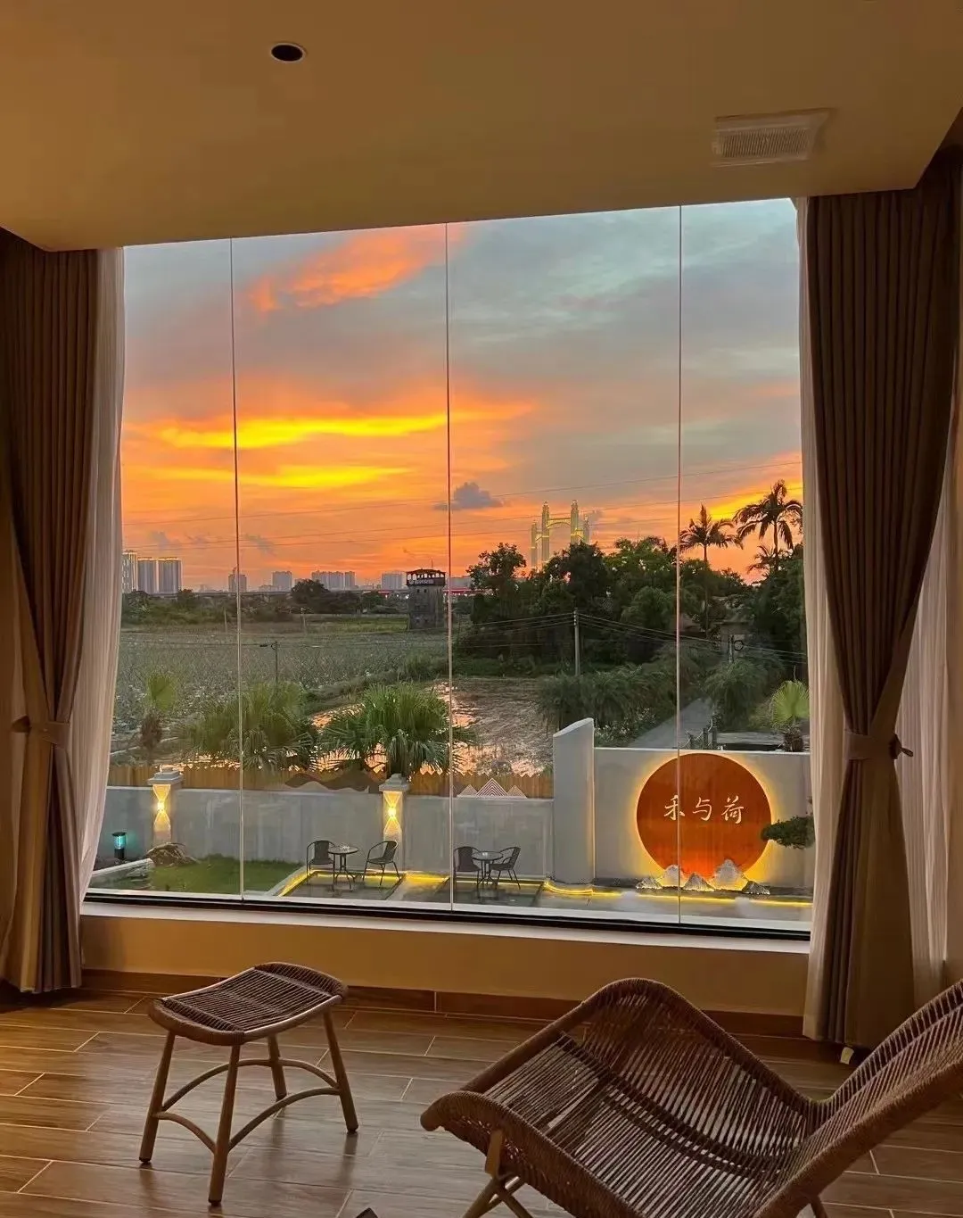 在滨海酒店,看日出与晚霞时序更换,