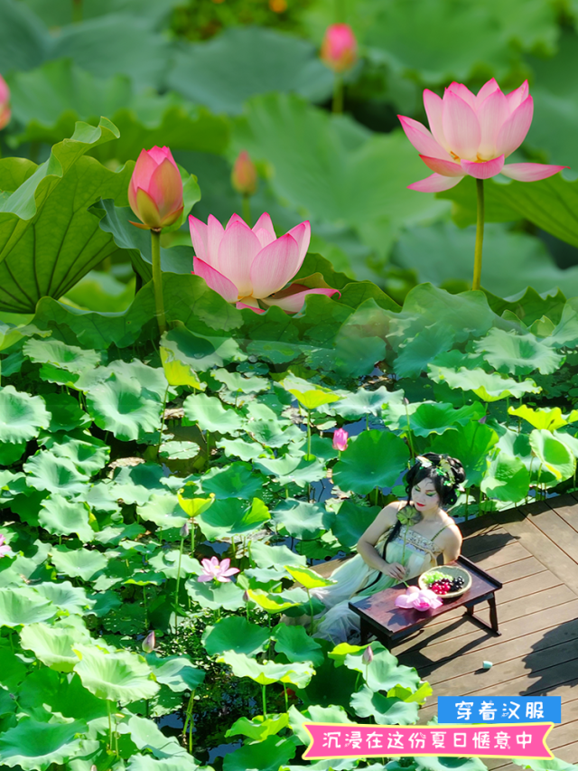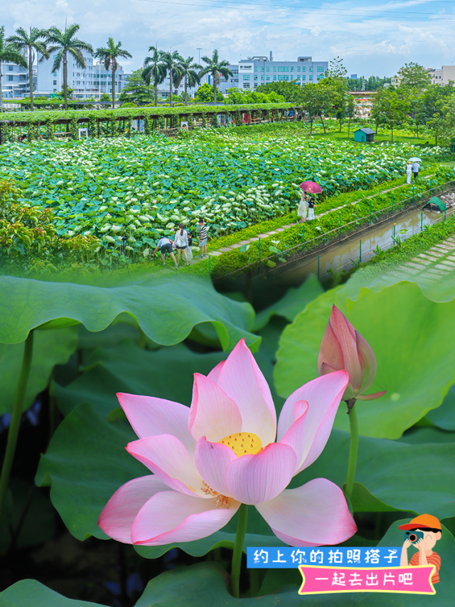 吸引各式爱荷的行人游客前来赏花、拍照……
