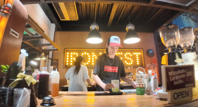 在充满工业风的餐饮店里,