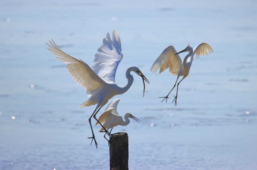 时而又与周边的白鹭比翼齐飞,
