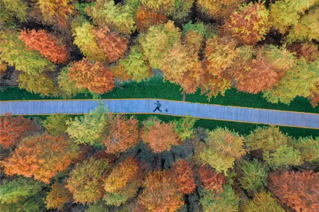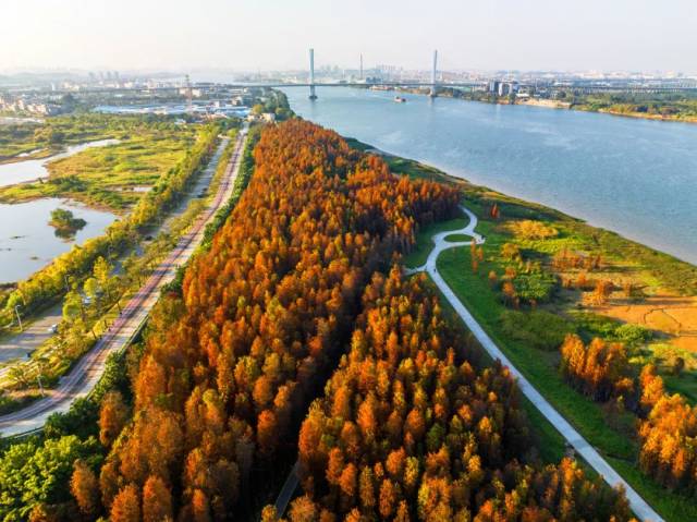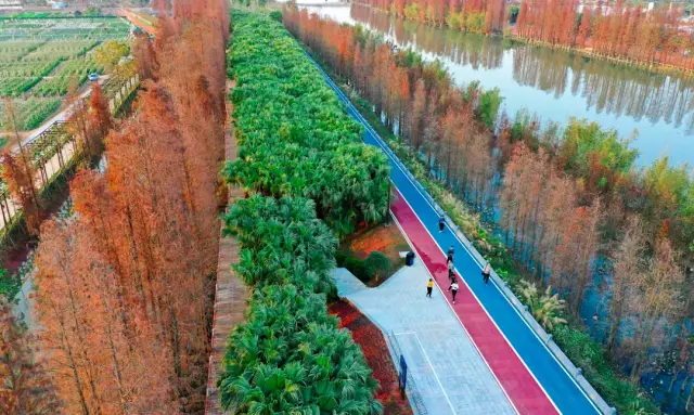 乡村绿廊两侧的葵林和落羽杉相得益彰 钟华悦摄