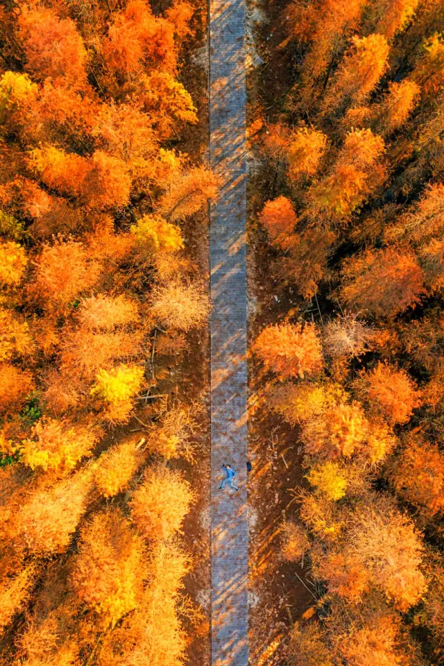 还未转红的杉树身披绿衣,浓绿葱翠,