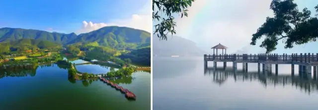 白水带大道两旁的健身绿道风景美丽且空气清新;景区内树木郁郁葱葱,空气清新怡人,可以沿着登山步道爬山游玩,景色优美,拥抱大自然。