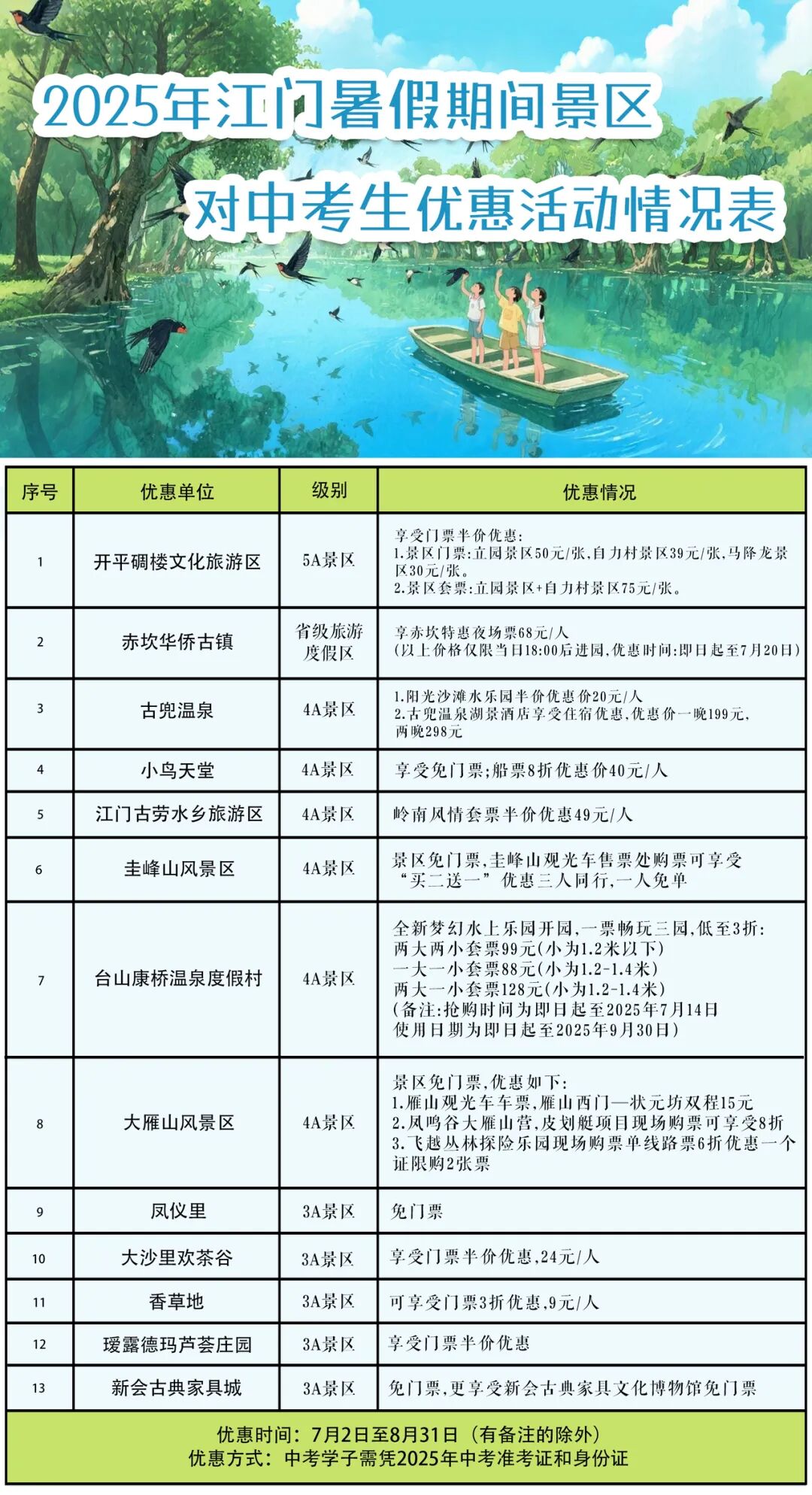 江门多个景区继续为中考考生