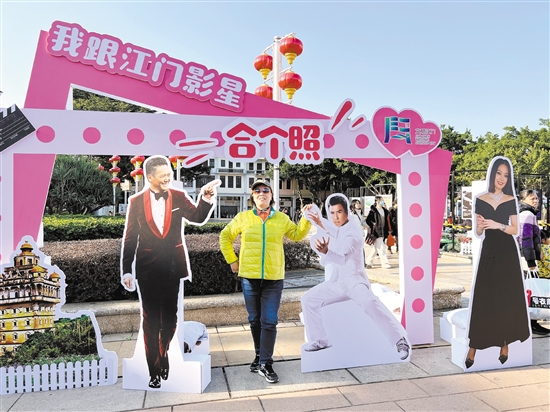中国侨都(江门)光影展设置了“我跟江门影星合个照”互动打卡区,吸引市民游客拍照打卡。