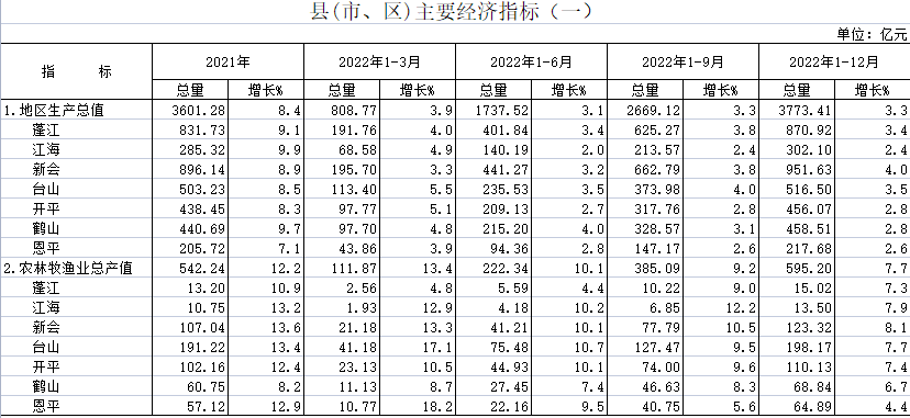 2022年12月县(市、区)主要经济指标(一)