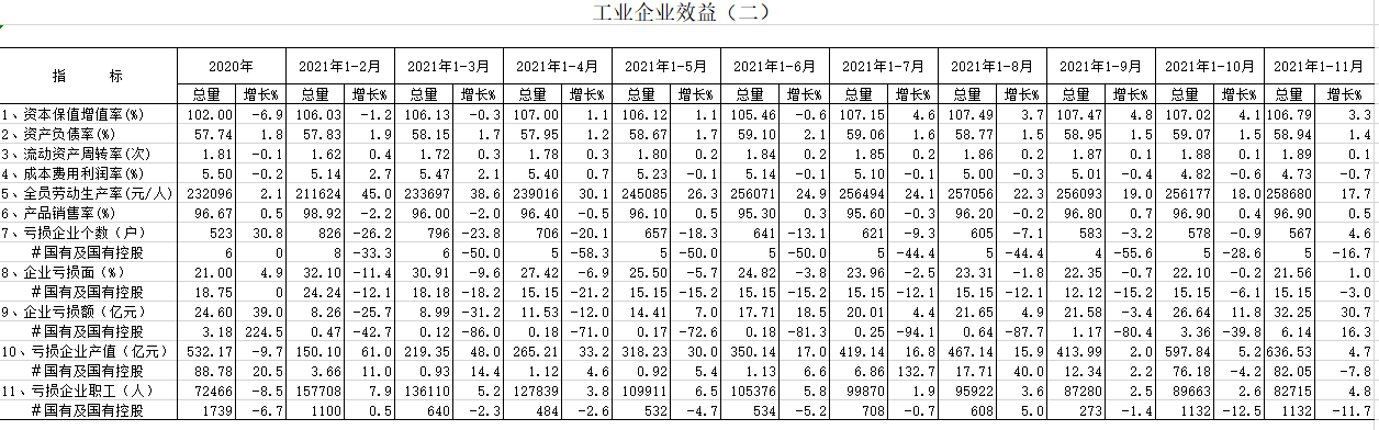 2021年11月工业企业效益(二)
