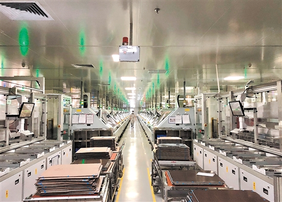 鹤山发力布局硅能源产业。图为位于鹤山的晶镁光能生产车间单晶硅组件生产线。