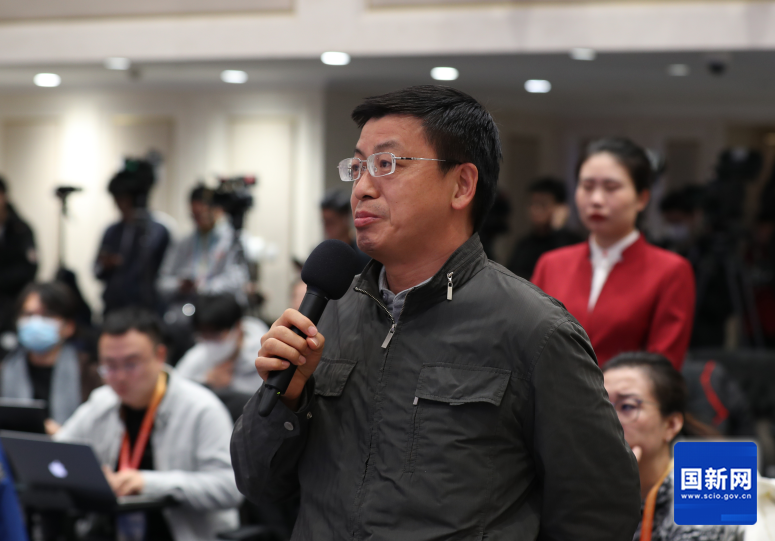 中央广播电视总台央视记者提问(刘健 摄)